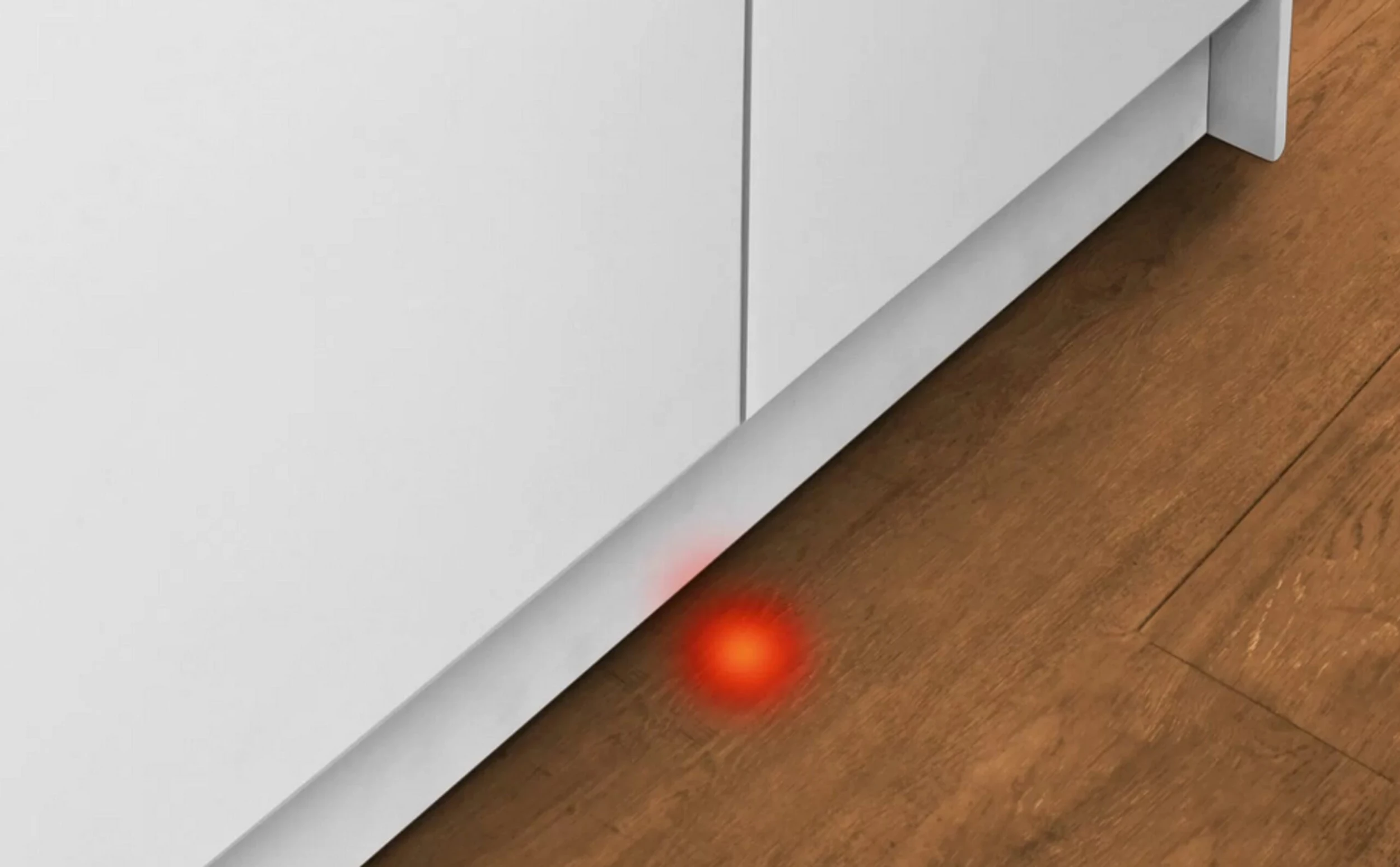 Ein roter Lichtpunkt auf dem Fußboden gibt Ihnen Auskunft darüber, ob Ihr vollintegrierter Geschirrspüler noch läuft oder bereits fertig ist.