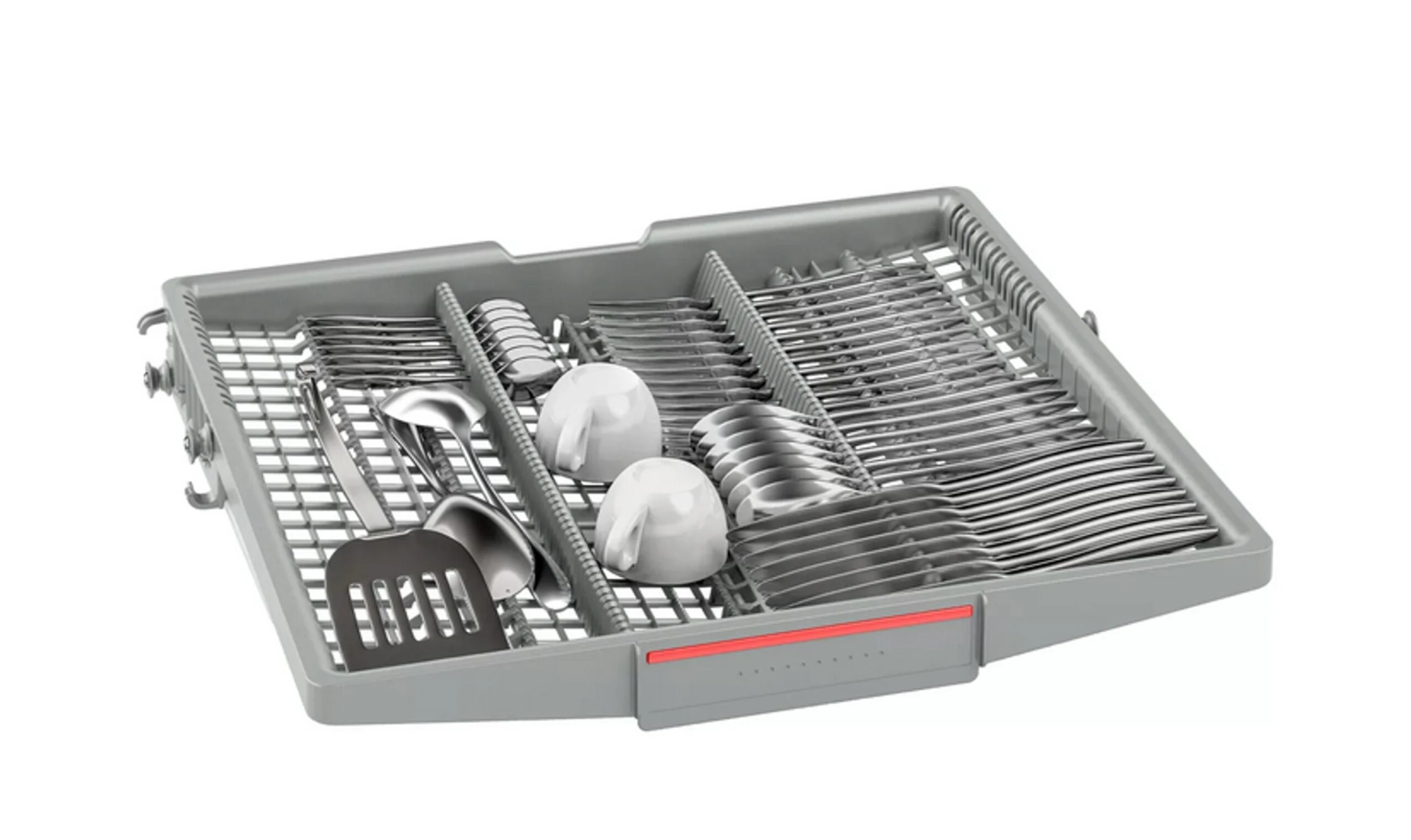 Die VarioSchublade bietet mit extra Aussparungen Platz für größere Besteckutensilien oder kleinere Geschirrteile, wie z.B. Espressotassen. So sind Sie beim Beladen Ihres Geschirrspülers flexibel und haben mehr Platz im Spülraum.
