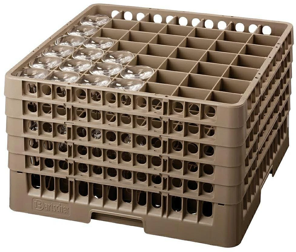 - Der Gläserkorb(Grundkorb) hat 49 Einteilungen und ist für Gläser bis zu einer Höhe von 81mm geeignet