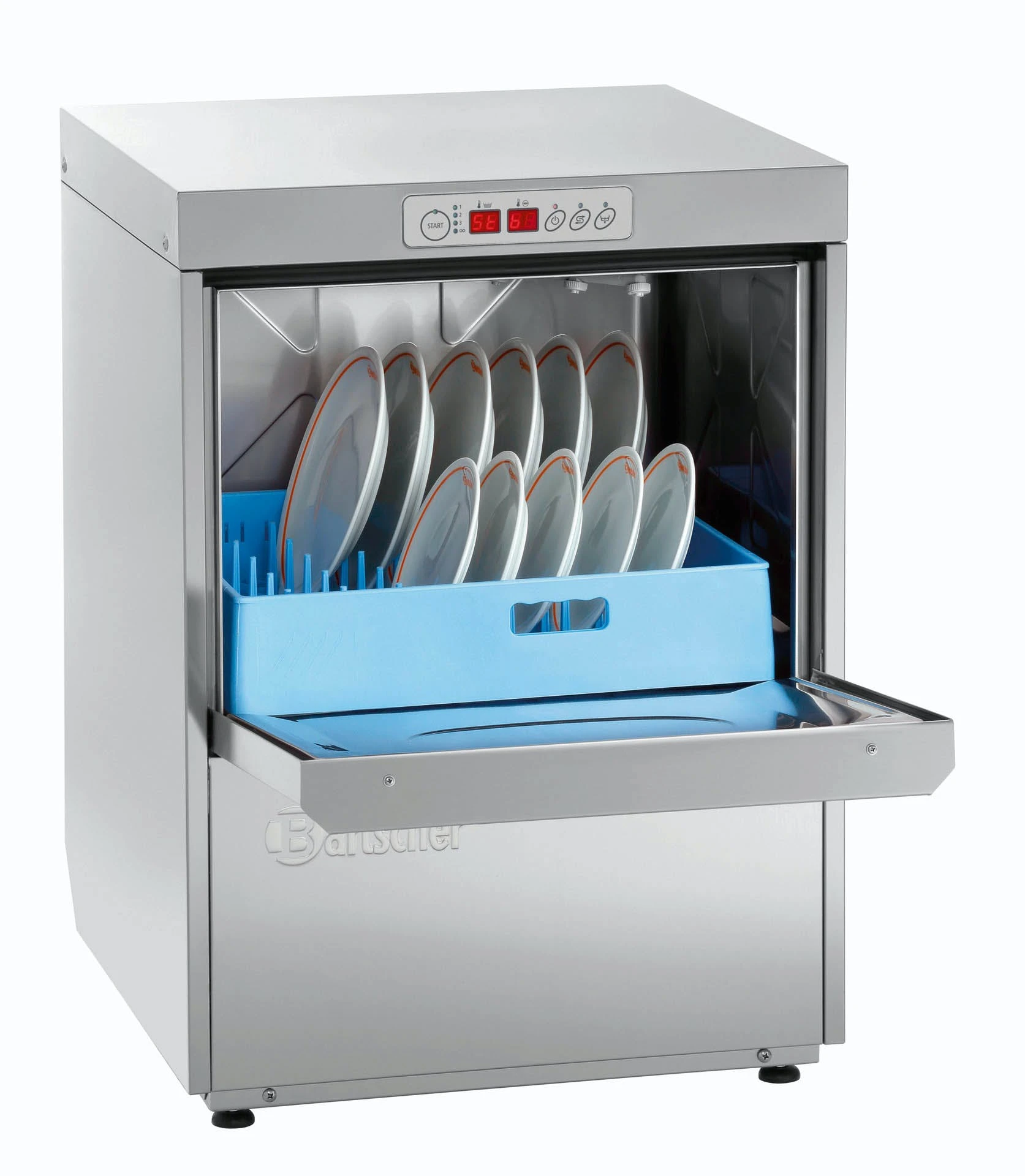 Maße B 595 x T 630 x H 845 mmAusführung CNS 18/10Leistung / Stunde max. 60 KörbeKorbabmessungen 500 x 500 mmKlarspüldosierpumpe jaTürkontaktschalter jaTrockenlaufschutz jaGesamtanschlusswert 5,06 kW / 400 V 50 Hz 3 NACTankheizung 2,7 kWBoilerheizung 4,5 kWLaufzeit 60/90/120/180 SekundenWasserverbrauch bei 2 bar 2,3 LiterTankinhalt 29 LiterWasserdruck 2-4 barWasserzulauf G 3/4“MWasserablauf Ø 50 mmZubehör 1 Gläserkorb1 Tellerkorb1 Besteckköcher Unterbaufähig Tür doppelwandig Reinigungsfreundlich Servicefreundlich