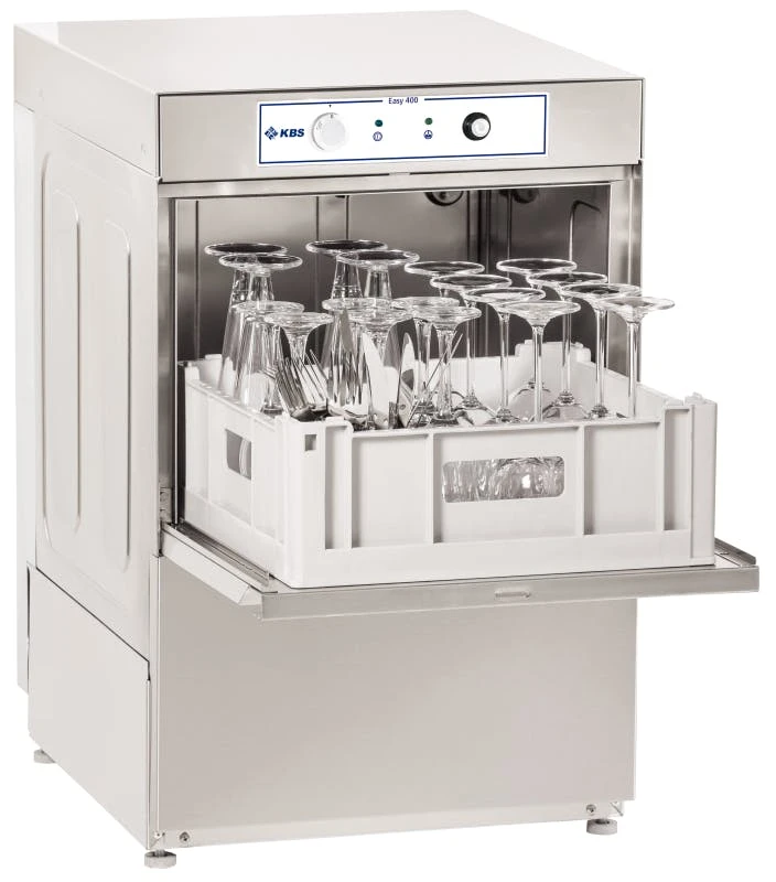 Geschirrspülmaschine Easy 501 3 Spülprogramme. Benutzerfreundliche elektronische Steuerung. Klar- und Spülmitteldosiergerät und Ablaufpumpe. 3 Spülprogramm 90, 120 und 180 Sekunden. Außen- und Innenmaterial aus CNS. Spül- und Nachspülarm oben und unten aus Kunststoff. Boilersicherheitsthermostat. Thermostoppfunktion. Automatische Wasserniveauregulierung mit Rückflussverhinderer. Eingebauter Türkontaktschalter. Doppelwandige Tür. Servicefreundliche Wasch-, Nachspülarme und Düsen aus Edelstahl ohne Werkzeug wechselbar. Tiefgezogener Tank für leichte Reinigung und verbesserte Hygiene. Gerät nicht steckerfertig. Umfangreiches Serienzubehör. Höhenverstellbare Ausgleichsfüße. 2 Körbe aus Kunststoff und 1 Besteckköcher.